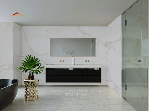 Với việc đưa các đường vân vàng vào tấm thạch anh Matrix Gold làm tăng thêm sức hấp dẫn thẩm mỹ tổng thể của nó. Sự kết hợp giữa màu trắng và vàng tạo nên sự tương phản nổi bật, khiến tấm đá trở thành điểm nhấn trong bất kỳ không gian nào