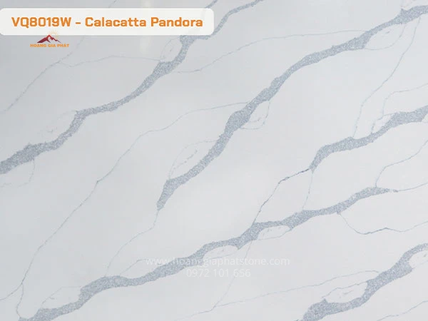 Calacatta Pandora mang đến sự pha trộn quyến rũ giữa sự sang trọng và nét quyến rũ ven biển, mang năng lượng êm dịu của biển vào bất kỳ không gian nào. Sự kết hợp giữa nền đá trắng và những đường gân xanh thẫm tạo nên bầu không khí thư giãn và hồi sinh, mang đến sự yên tĩnh và thanh thản.