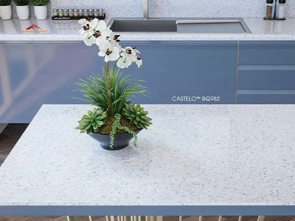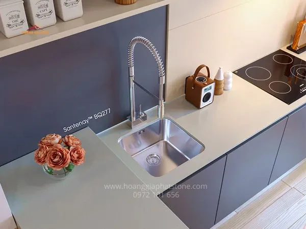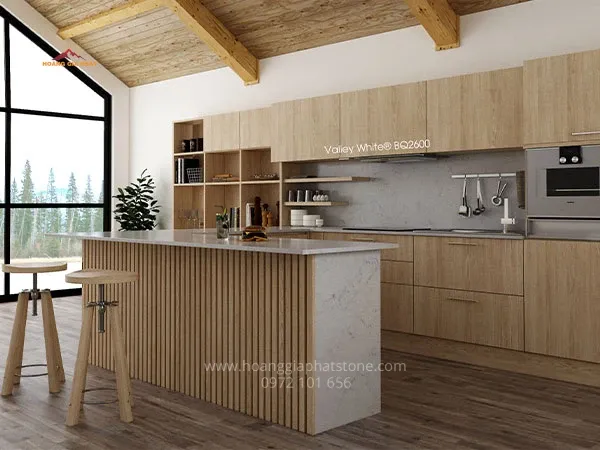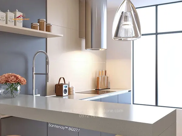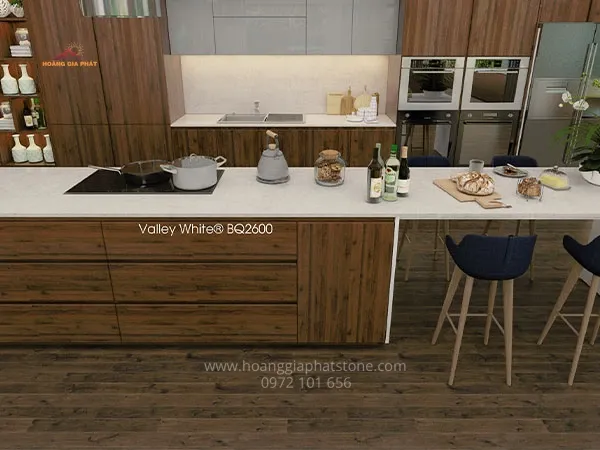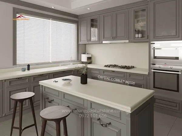Bàn Bếp: Đá VICOSTONE mang lại không gian bếp sạch sẽ, hiện đại và dễ dàng bảo dưỡng.